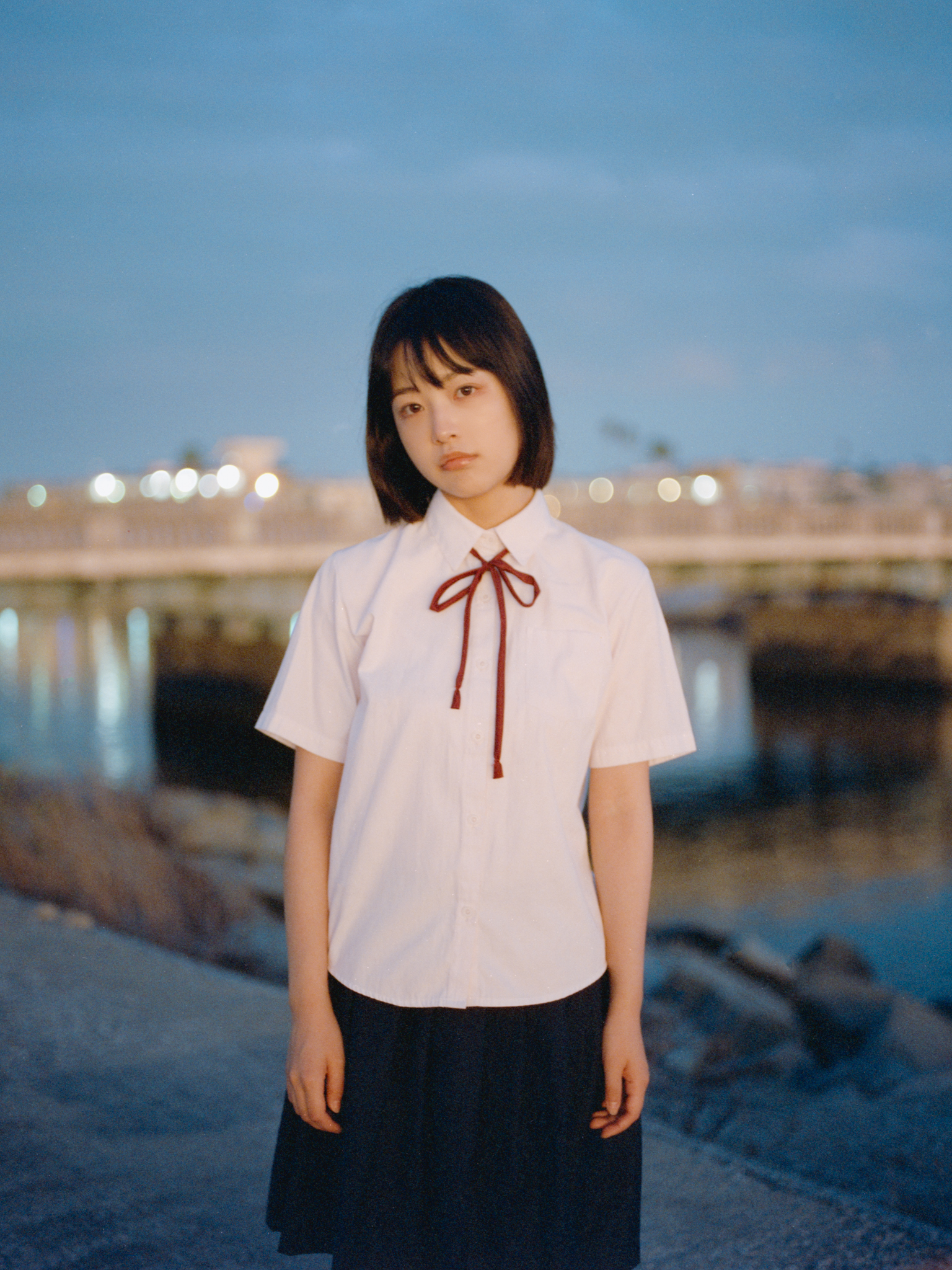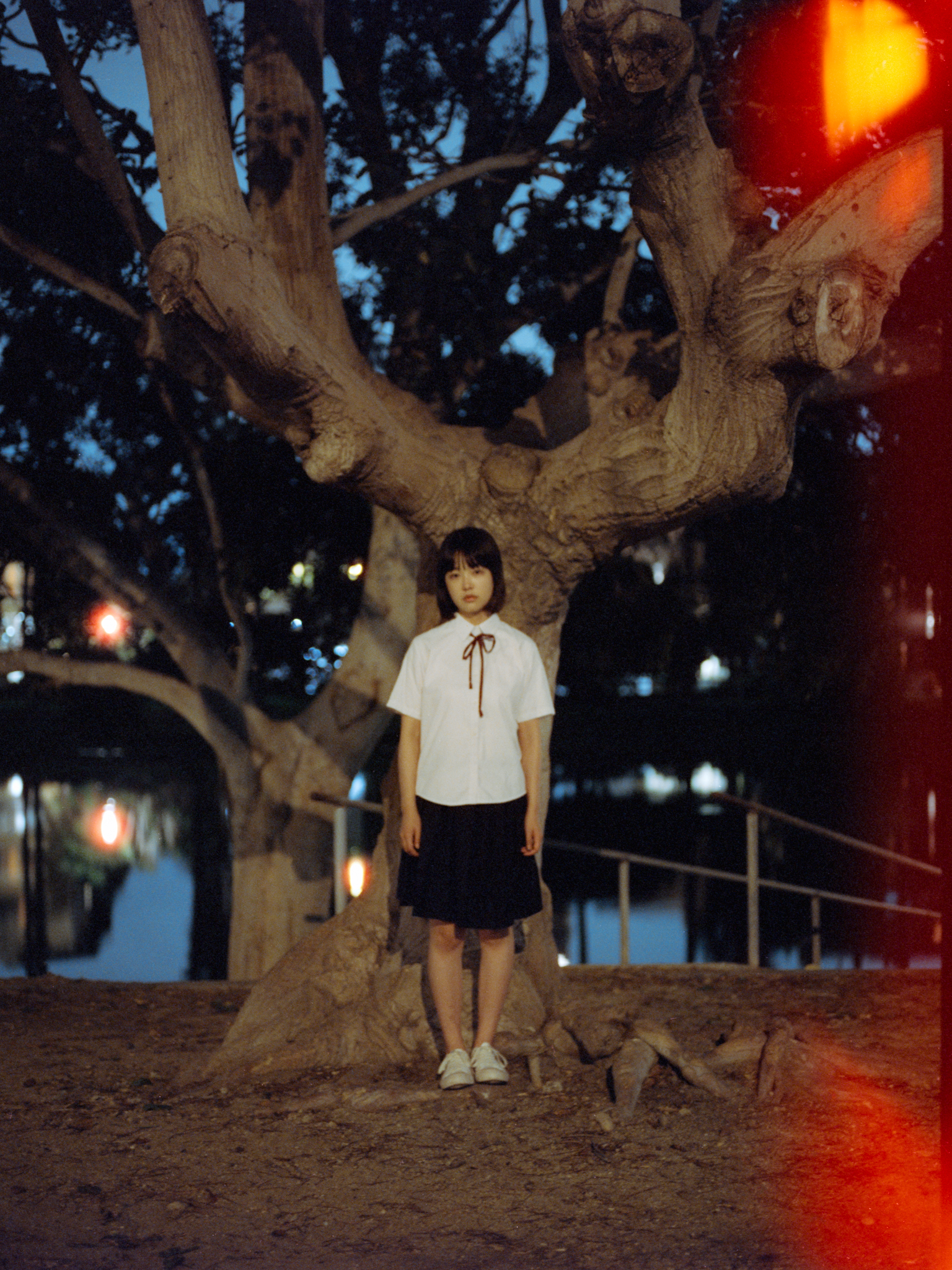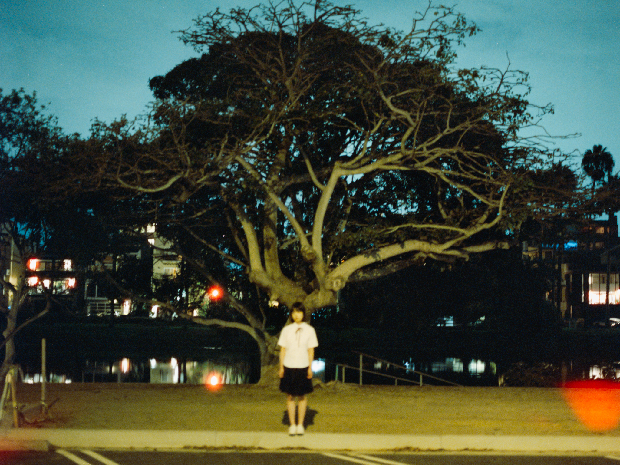 At this point, it is too dark to continue shooting at the pier, so we decided to walk around to find some street lights to finish the roll. These photos are all shot at very low shutter speed, so I have to ask her to stay very still.