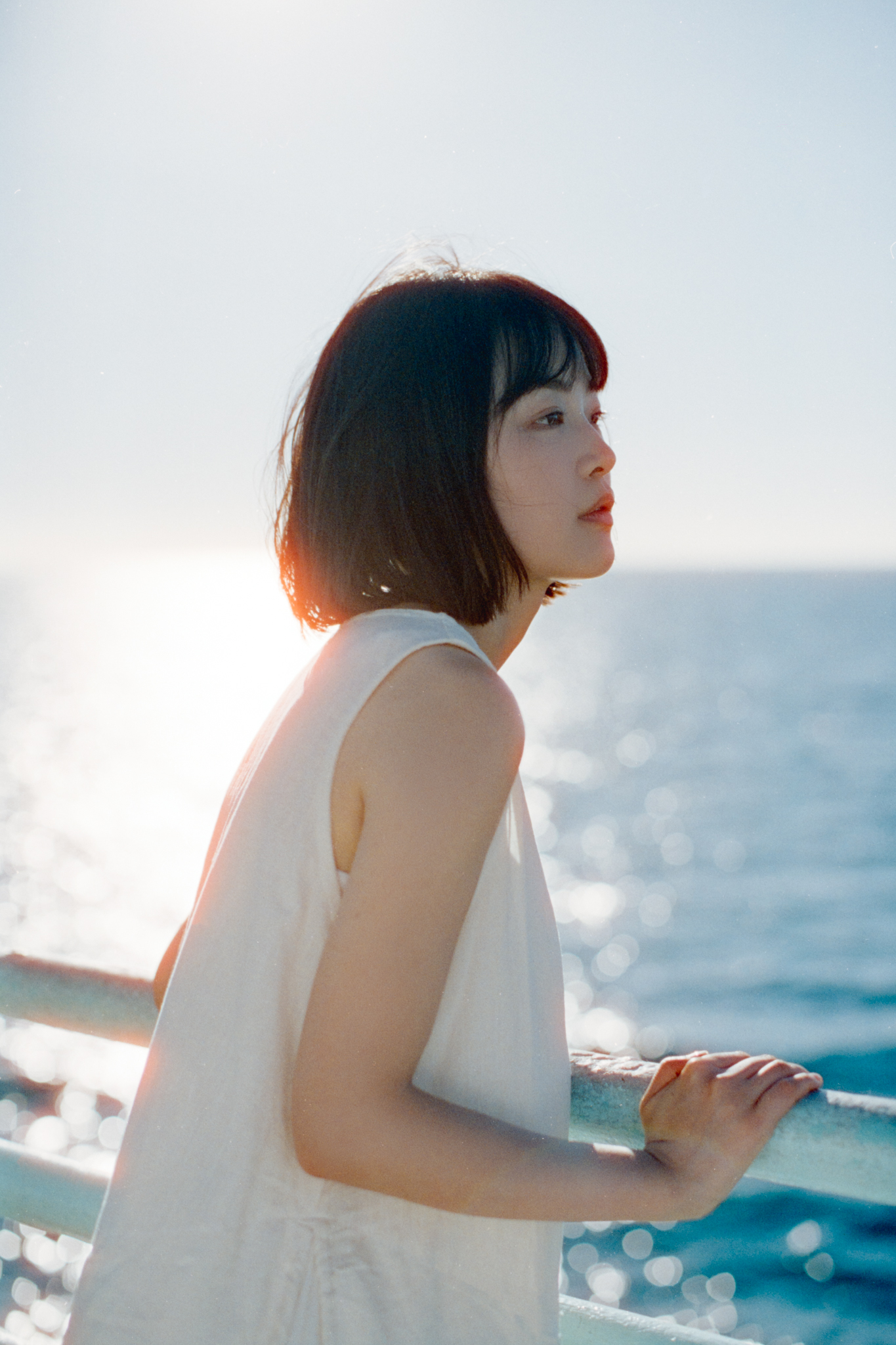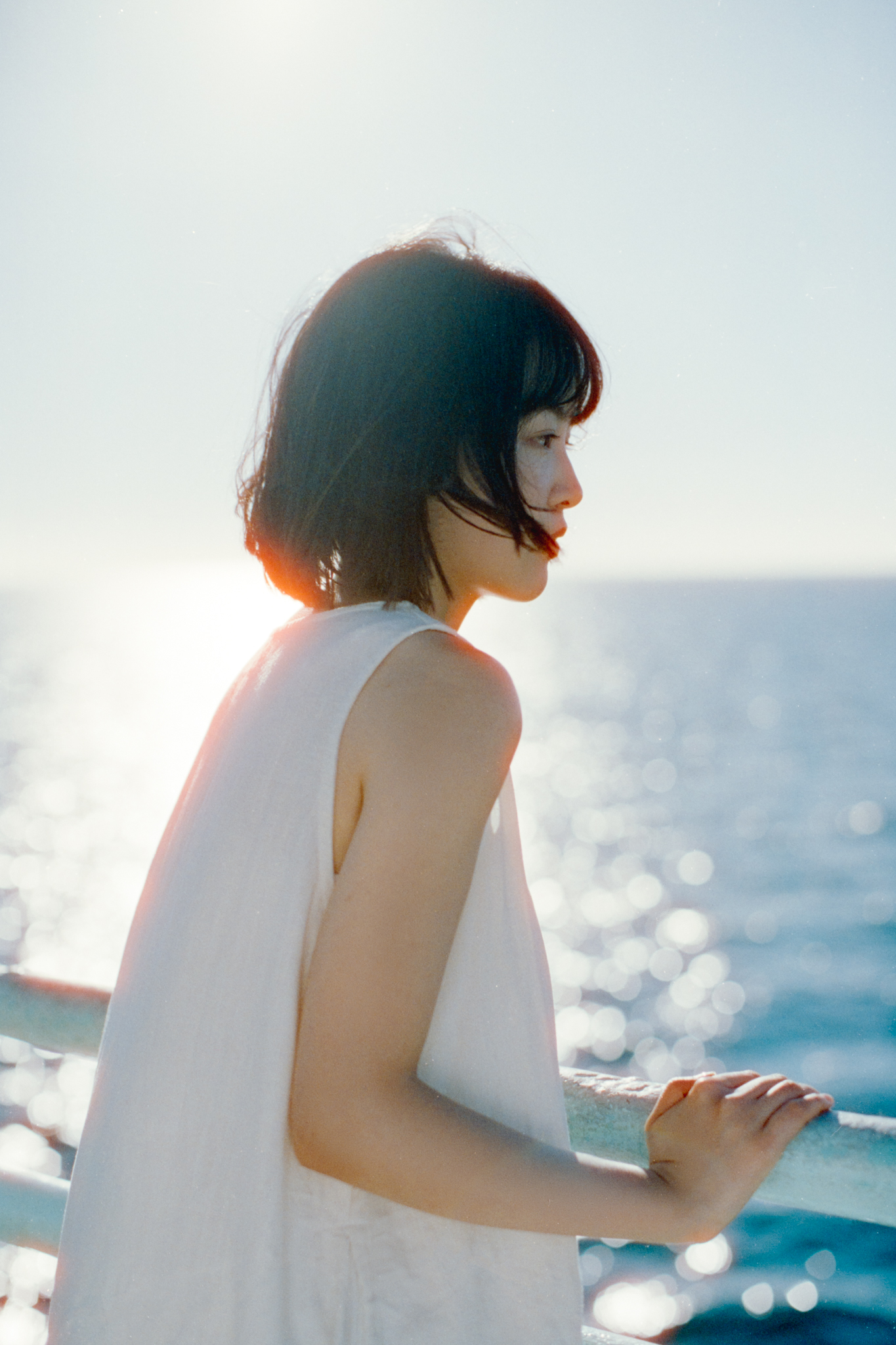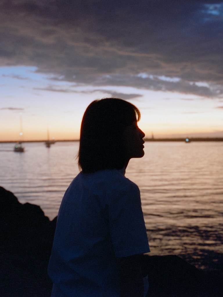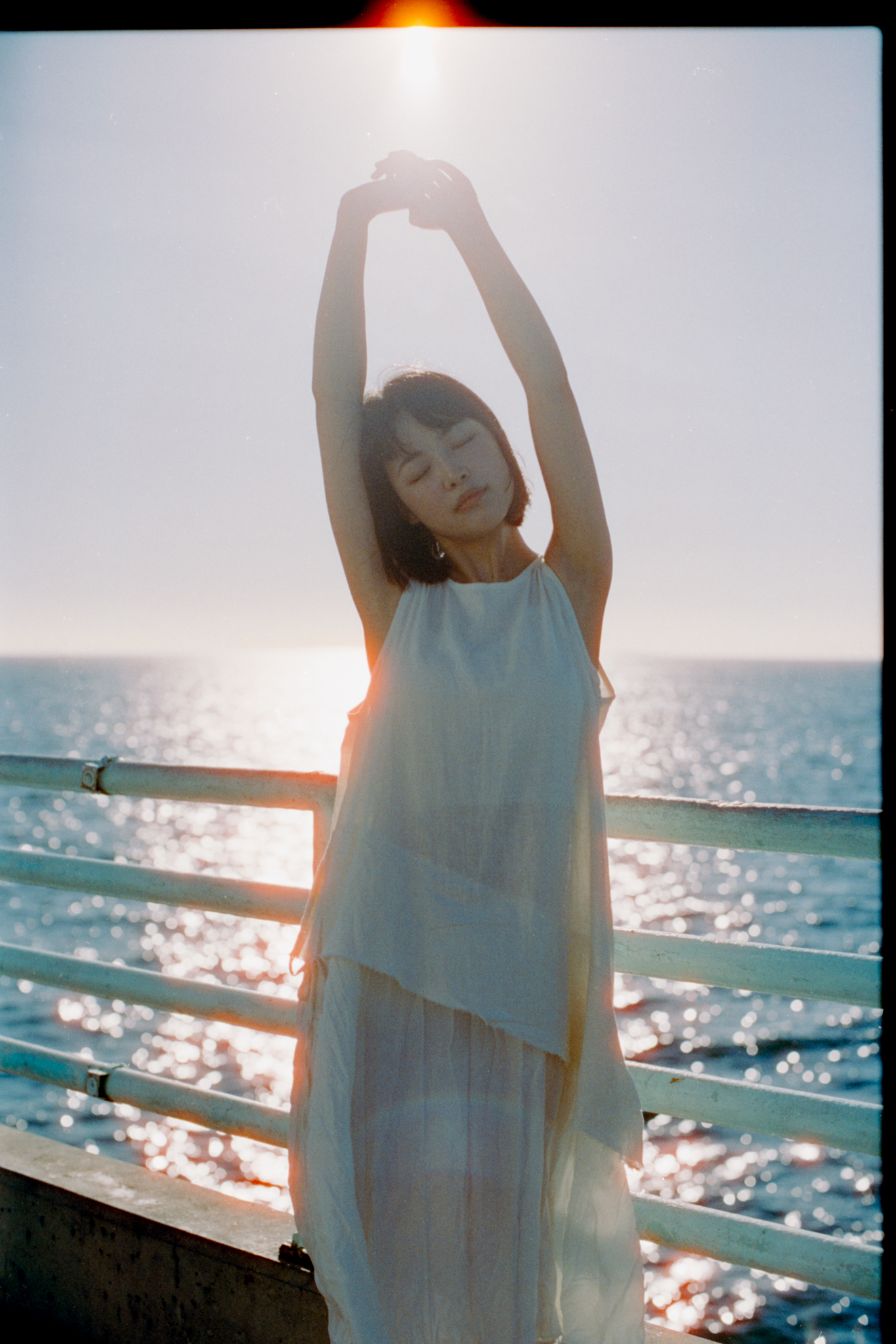 By the end of the roll, I took a couple of shots backlit, now the halation finally comes into play. I really like how the sunlight hit the water and bounces back on her with this orange glow…