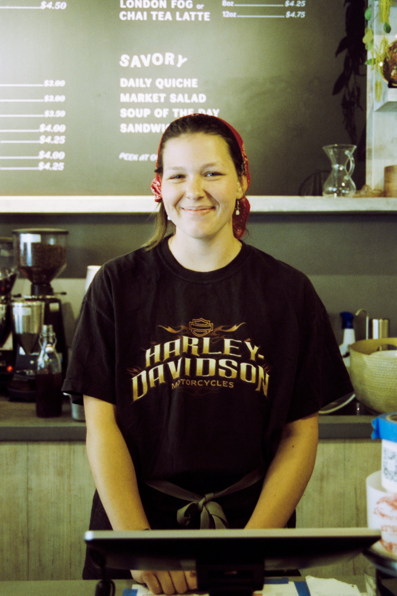 I know if I wasn’t pressured by the other customer who is waiting for her coffee order right behind me, I’d frame this better. I know if I walk a couple of more steps in, the composition would be more interesting. If only I could make up my mind on including the bike guy or not.