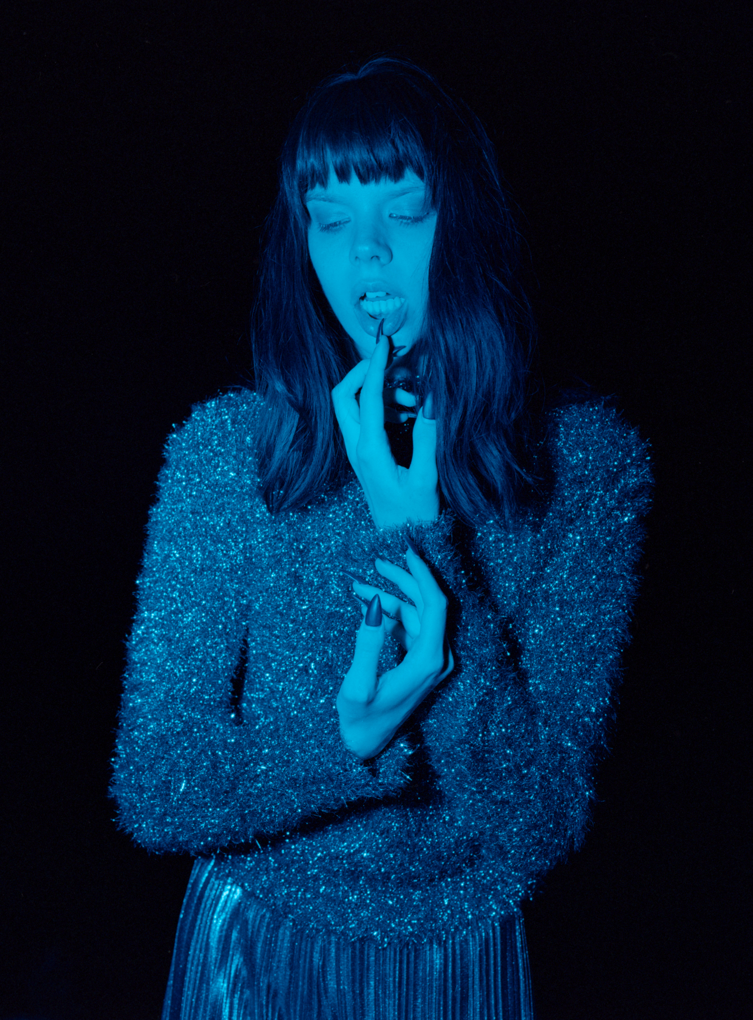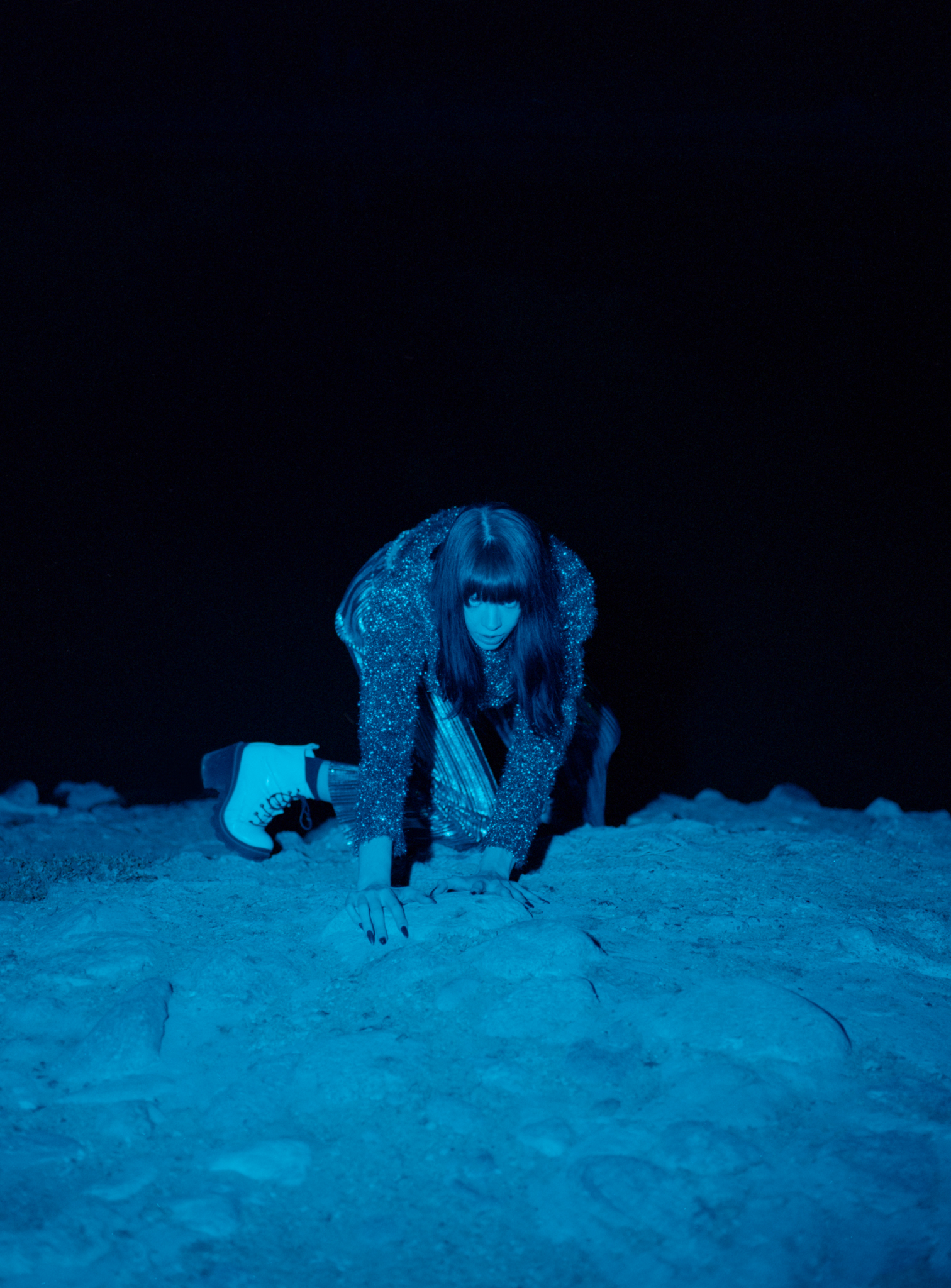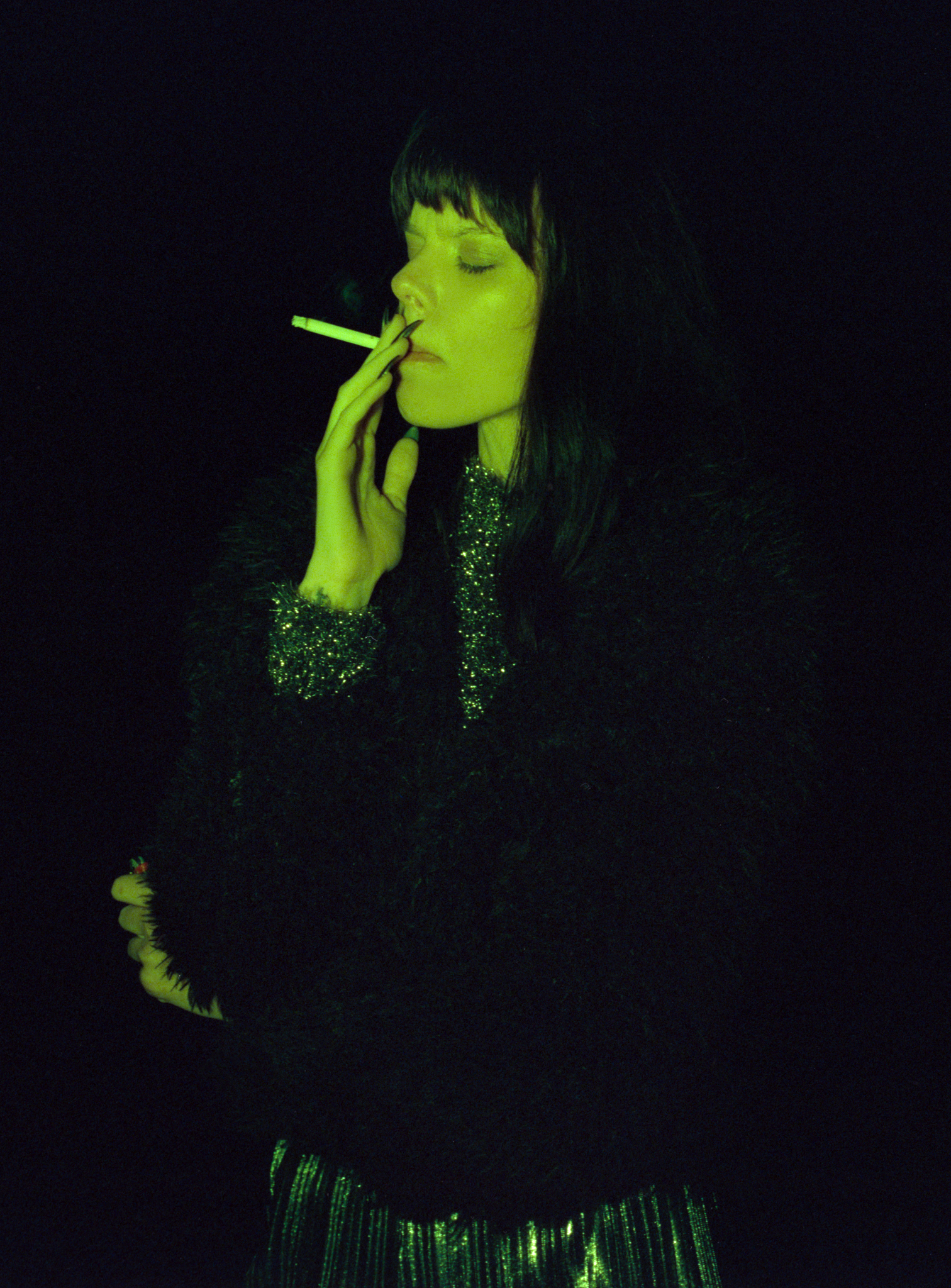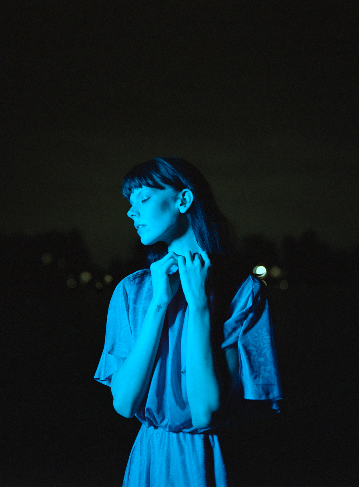 What’s interesting about the color is that, for example, this shot, I used slightly yellow-colored light, but since we were shooting on Cinestill 800t, it is a cooler temperature stock, the warm light canceled out the blue tone, makes it look like daylight balanced. Does that make sense?